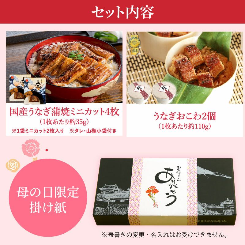 【母の日ギフト】国産うなぎ蒲焼ミニカット4枚&うなぎおこわ2個セット