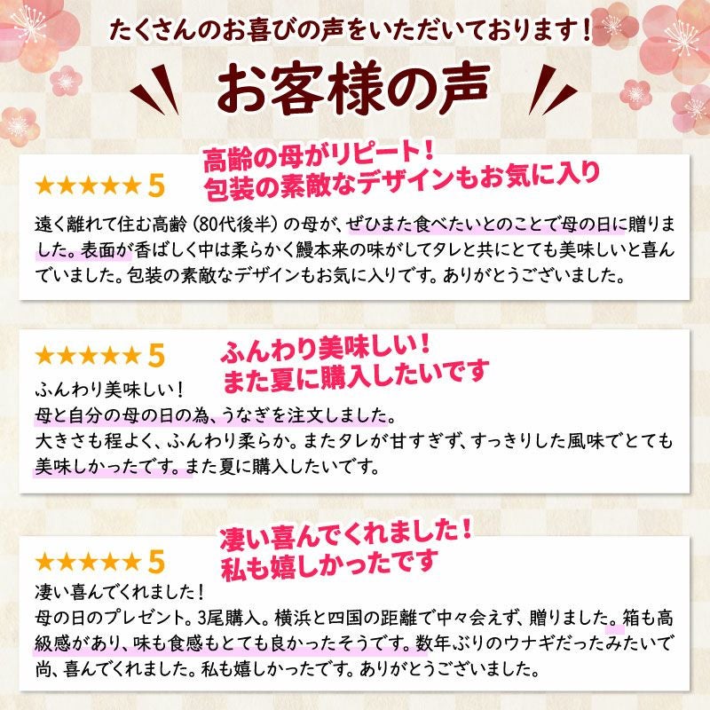 他の画像を見る モンドセレクション金賞受賞!鰻の本場静岡から最高の味をお届け!! 【母の日ギフト】国産うなぎ 長蒲焼3尾セット 化粧箱付 送料無料 クール便でお届け 通常価格 ¥ 7,980 税込 在庫切れ カートに入れる お気に入りに登録する