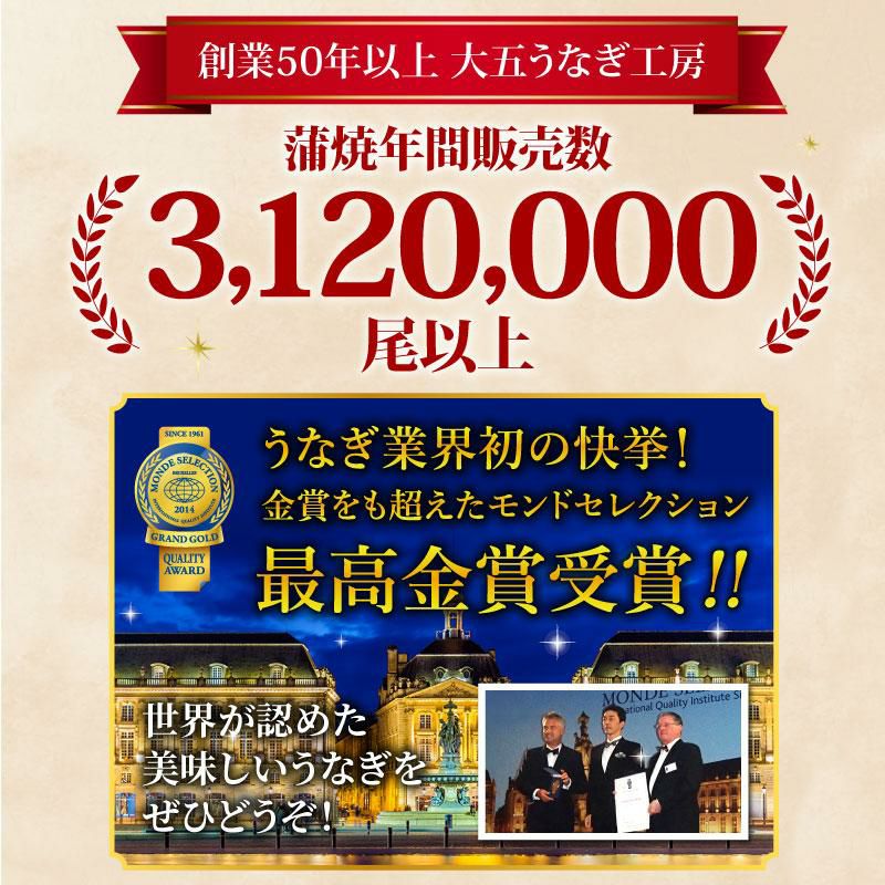 他の画像を見る 大五のうなぎギフト ミシュランシェフ監修&モンドセレクション最高金賞受賞!! 【2026年6月販売再開予定】国産うなぎ蒲焼き 駿河大五郎1尾 うな侍ハーフカット2パック 焼肝串2本プレゼント 化粧箱付 送料無料 クール便でお届け 通常価格 ¥ 8,870 税込 在庫切れ 詳細を見る お気に入りに登録する