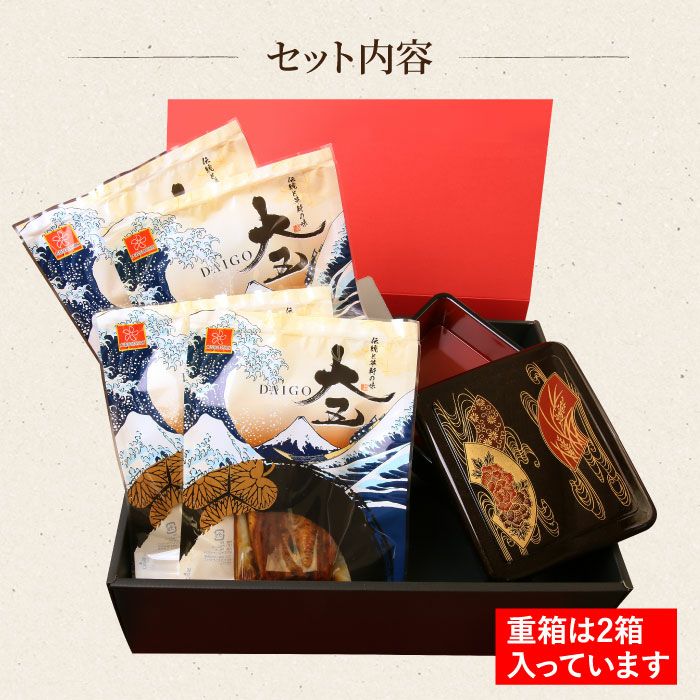 モンドセレクション金賞受賞の蒲焼を、本格的な重箱でお楽しみいただくためのセットです。
