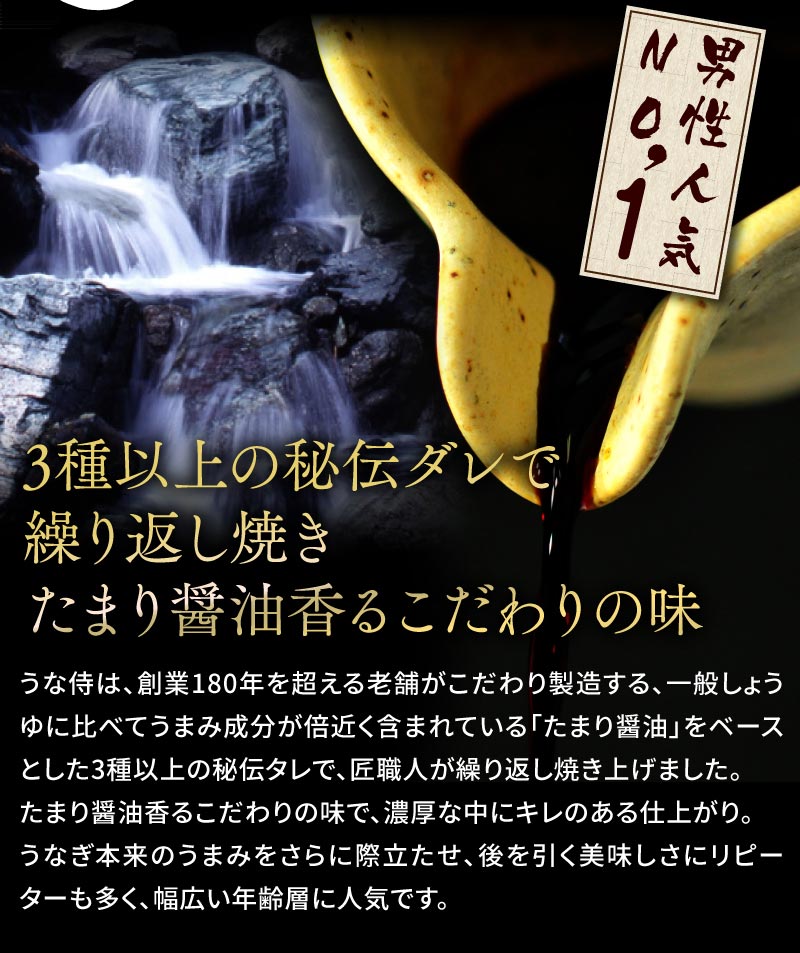 【うな侍】うなぎ(国産・ニホンウナギ)、しょうゆ(小麦・大豆を含む)、砂糖、みりん、発酵調味料、水あめ、清酒/カラメル色素、調味料(アミノ酸等)、ビタミンB1 |