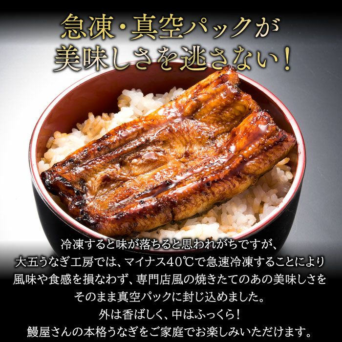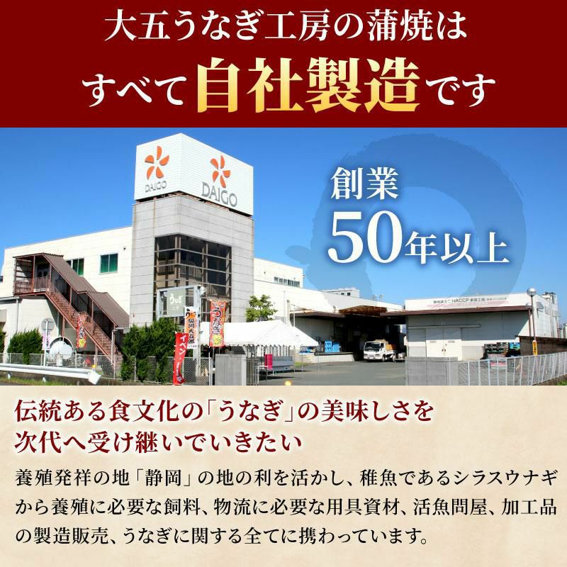 大五うなぎ工房が扱う数百万尾の鰻の中で、「うなっ娘」「うな侍」はわずか2%、「駿河大五郎」は0.2%の希少な原料を使用しているため、生産量が限られております。