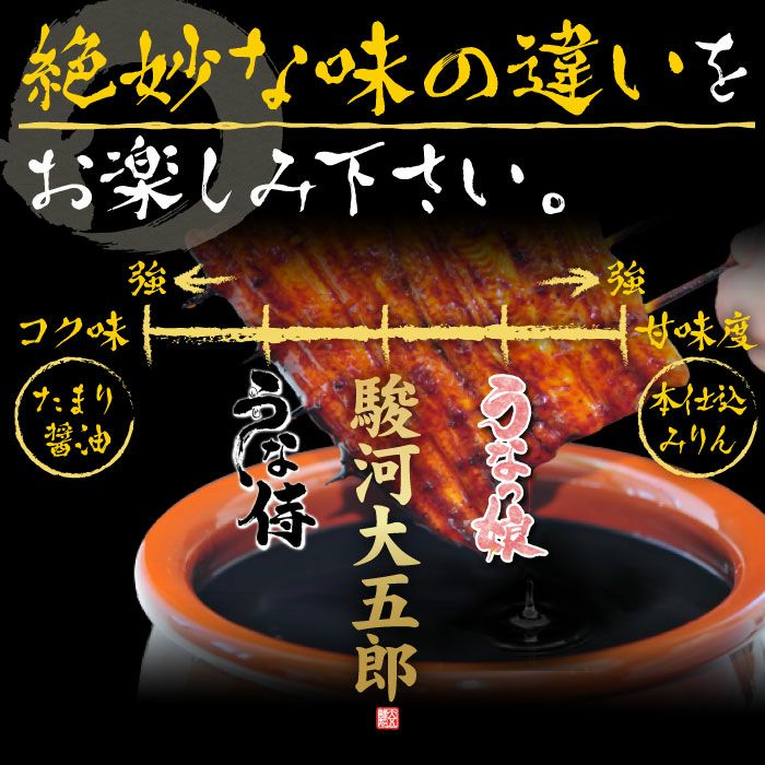 「駿河大五郎」「うなっ娘」「うな侍」は味・カタチ・大きさなど厳格な品質基準を採用したプレミアムブランドです。