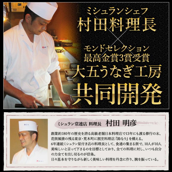 他の画像を見る ミシュランシェフ村田料理長監修!世界に認められた最高品質のうなぎ蒲焼 【2026年6月販売再開予定】うなぎ蒲焼 モンドセレクション最高金賞3種セット 化粧箱付 風呂敷包 送料無料 クール便でお届け 通常価格 ¥ 10,980 税込 在庫切れ 詳細を見る お気に入りに登録する