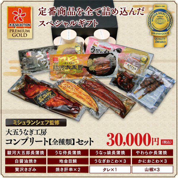 他の画像を見る 人気商品を全てセットにしたスペシャルギフト 「大五うなぎ工房コンプリートセット」豪華化粧箱・風呂敷包み 化粧箱付 風呂敷包 送料無料 クール便でお届け 通常価格 ¥ 30,000 税込 在庫切れ 詳細を見る お気に入りに登録する