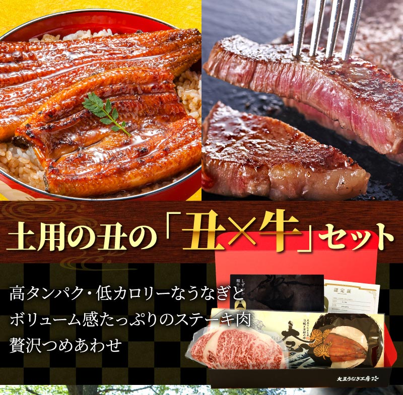 丑牛セット 国産うなぎ長蒲焼&しずおか和牛サーロインステーキ |