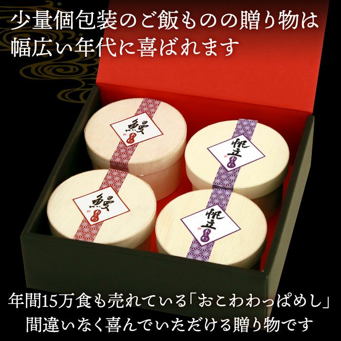 他の画像を見る 毎年15万食以上売り上げる、大五うなぎ工房の大人気商品! おこわ4種食べ比べセット(うなぎ・かに・牛しぐれ・牛そぼろ) 化粧箱付 送料無料 父の日 クール便でお届け 通常価格 ¥ 3,980 のところ 父の日早割価格 ¥ 3,580 税込 詳細を見る お気に入りに登録する