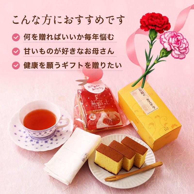 他の画像を見る 「ありがとう」の気持ちを甘さと香りに込めて 【母の日ギフト】長崎カステラ&5種類のティータイムセット 化粧箱付 送料無料 母の日 通常価格 ¥ 2,980 のところ 母の日早割価格 ¥ 2,680 税込 カートに入れる お気に入りに登録する
