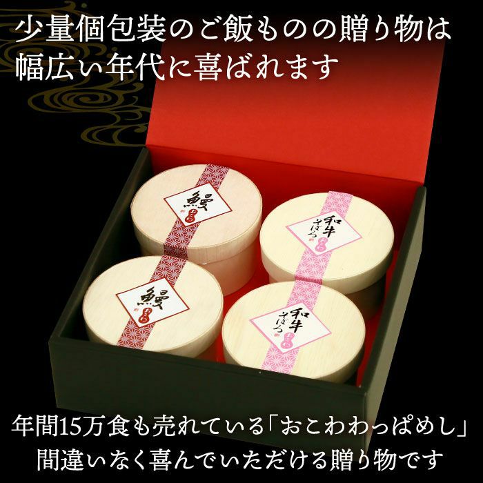 他の画像を見る 毎年15万食以上売り上げる、大五うなぎ工房の大人気商品! おこわ2種セット うなぎ・牛そぼろおこわ(4個入り) 化粧箱付 送料無料 クール便でお届け 通常価格 ¥ 3,980 税込 詳細を見る お気に入りに登録する