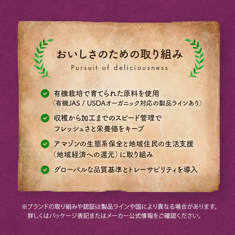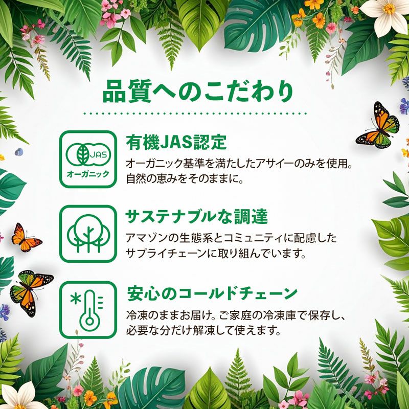 他の画像を見る 高ポリフェノール、鉄分と食物繊維が豊富なスーパーフード 有機JAS サンバゾン オーガニック 冷凍アサイー 12パック / 20パック / 40パック / 60パック 簡易包装 送料無料 eギフト クール便でお届け 通常価格 ¥ 5,480 税込 〜 通常価格 ¥ 税込 詳細を見る お気に入りに登録する