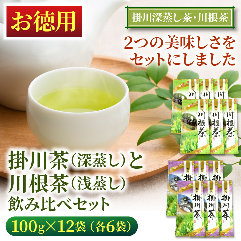 【お徳用12袋入り】飲み比べセット 深蒸し・掛川茶と浅蒸し・川根茶 <各100g×6袋>