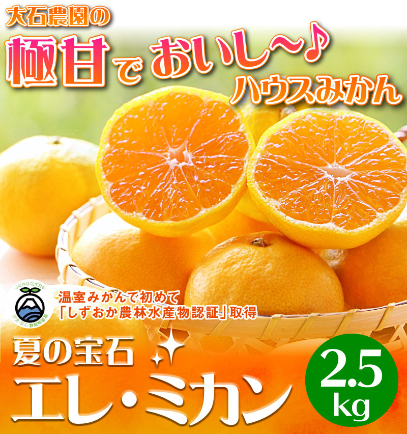 夏の宝石 エレ・ミカン2.5kg【静岡県産ハウスみかん】