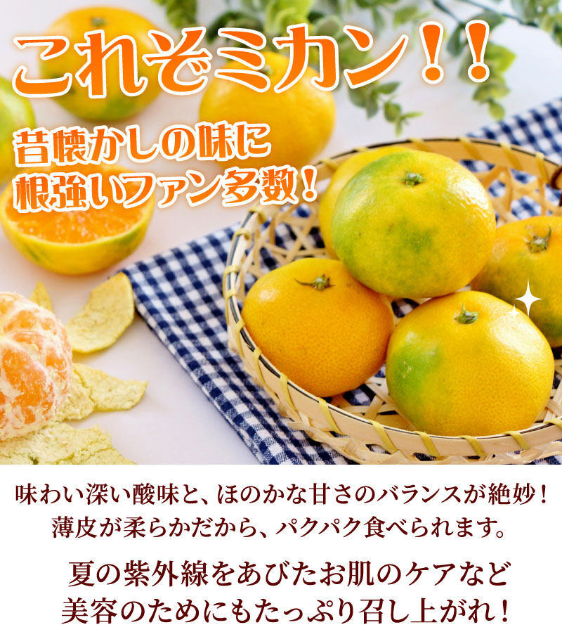 味わい深い酸味と、ほのかな甘さのバランスが絶妙。果肉を包む薄皮が薄くて柔らかいから、パクパク食べられます。みかんの爽やかな香り、ビタミンやクエン酸は、夏疲れの残る初秋にピッタリ!夏の紫外線をあびたお肌のケアなど、美容のためにもたっぷり召し上がってください。 ご家庭用はもちろん、贈り物にも喜ばれます。