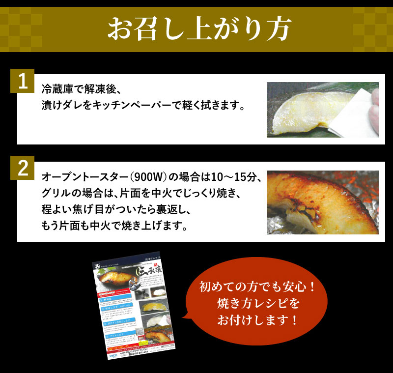 化学調味料や着色料を使わない、手間暇と心を込めたこだわりの無添加漬けだれに、昔ながらの伝統製法でじっくり漬け込みました。一切れずつ冷凍真空パック。食べたい時に必要な分だけご利用いただけます。