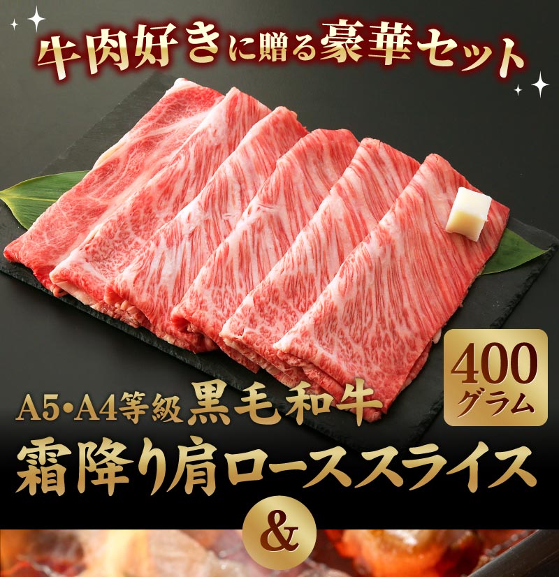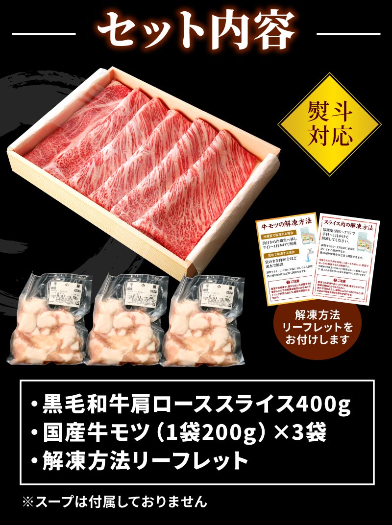 黒毛和牛 霜降り肩ローススライス肉400g&厳選国産牛ホルモン600gセット