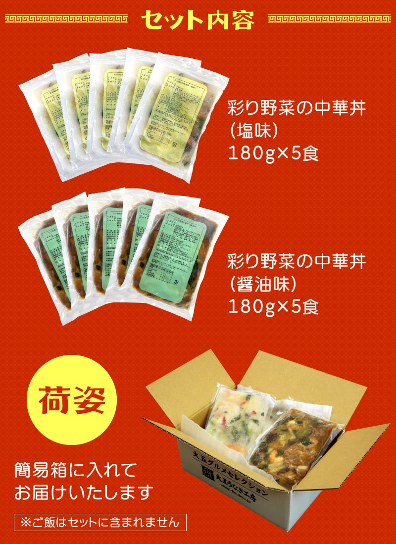 青山シャンウェイ 彩り野菜の中華丼 2種10食セット(塩味5食、醤油味5食)