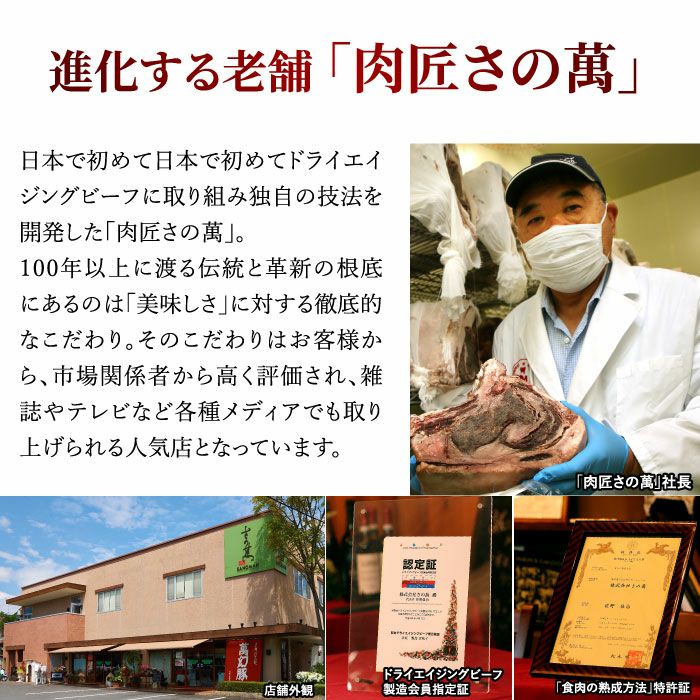 肉質は柔らかくジューシーな上、後味がさっぱりとしているのが特徴。網焼きでも鉄板で焼いても美味しくお召しあがりいただけます。熟成肉ならではの凝縮された肉の旨味をお楽しみください。