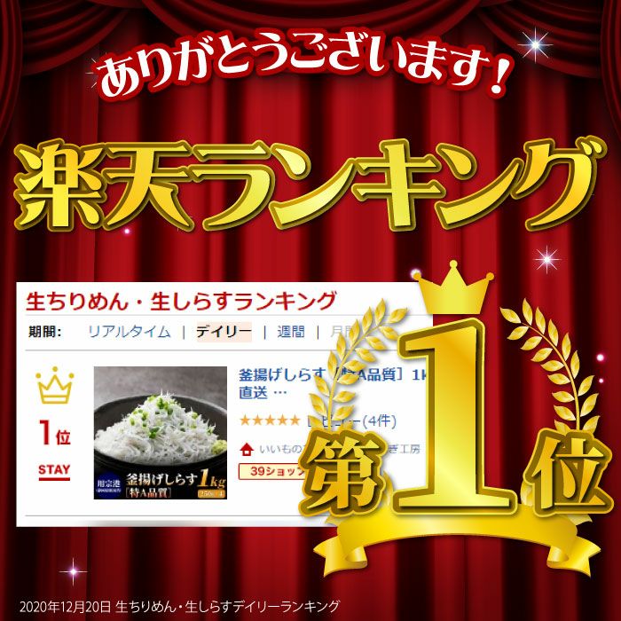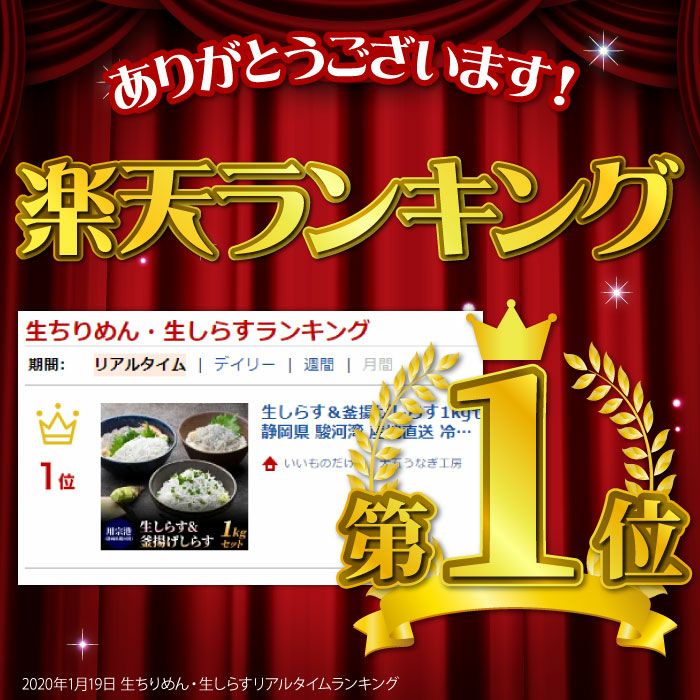 他の画像を見る 用宗港(静岡県駿河湾)釜揚げしらす[特A品質][無添加&無漂白]1kg業務用ブロック【冷凍】 簡易包装 送料無料 eギフト クール便でお届け 通常価格 ¥ 6,980 税込 詳細を見る お気に入りに登録する