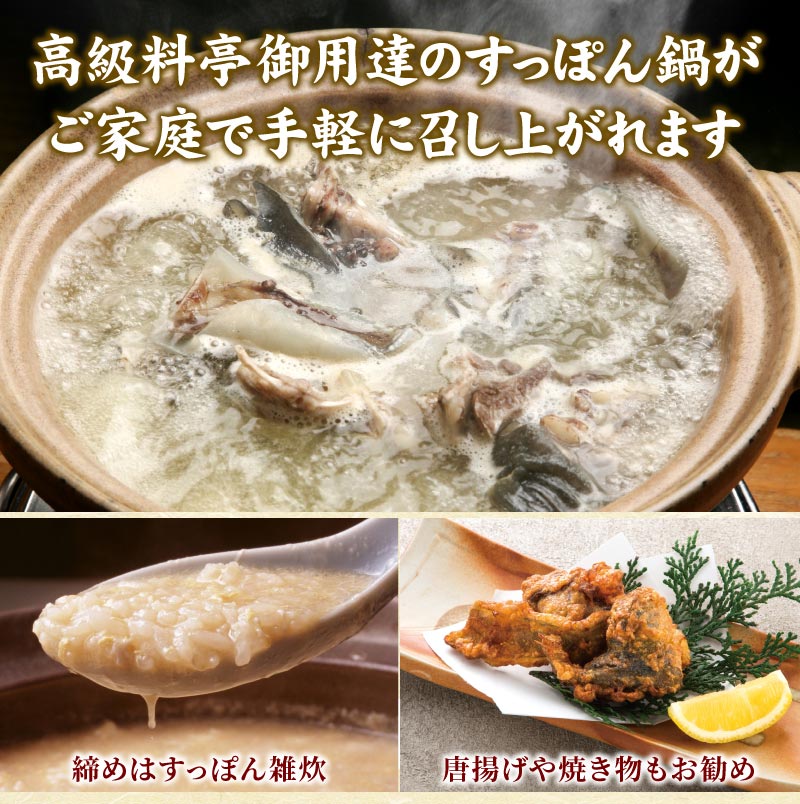 ※必ず加熱して賞味期限内にお早めにお召し上がりください。すっぽんは解体済みです。そのまま解凍してお使いいただけます。