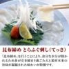 ●昆布締め とらふぐ刺し(てっさ):「昆布締め」を行うことにより、余分な水分が除かれるため身が引き締まり歯ごたえと素材本来の旨味が凝縮された味わいが特徴です。