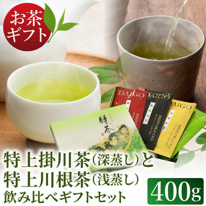 特上掛川深蒸し緑茶&特上川根茶 飲み比べセット 400g(各100g×2袋) ギフトボックス