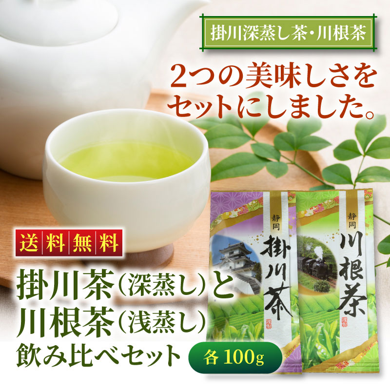 掛川茶(深蒸し)と川根茶(浅蒸し)各100g 飲み比べセット