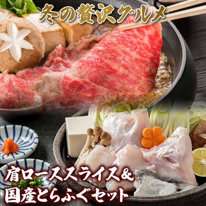 黒毛和牛霜降り肩ロースと国産とらふぐの豪華鍋セット 黒毛和牛 肩ローススライス&国産とらふぐバラエティセット