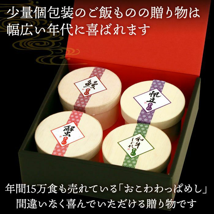 他の画像を見る 毎年15万食以上売り上げる、大五うなぎ工房の大人気商品! おこわ4種セット うなぎ・カニ・牛しぐれ・ほたて 化粧箱付 送料無料 クール便でお届け 通常価格 ¥ 3,980 税込 詳細を見る お気に入りに登録する