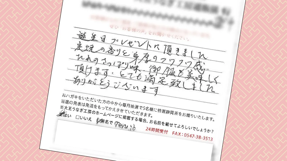 また、お誕生日の贈り物として当店のうなぎをご賞味いただき、誠にありがとうございます。 炭焼きの香ばしさ、ふっくらとした身の食感、そしてさっぱりとした自家製のたれ—— ひとつひとつの味わいを丁寧に感じ取ってくださり、心より嬉しく思います。 ご飯との相性もご満足いただけたとのこと、職人一同の励みになります。 特別な日の食卓に、少しでも華を添えることができましたなら、これ以上の喜びはございません。 今後とも、心に残るひとときをお届けできるよう努めてまいります。またのご利用を心よりお待ちしております。