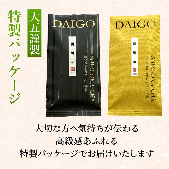 他の画像を見る 静岡の誇る高級茶 特上掛川深蒸し茶と特上川根茶 400g(各100g×2袋) 化粧箱付 送料無料 定価 ¥ 7,500 のところ 当店特別価格 ¥ 4,500 税込 詳細を見る お気に入りに登録する