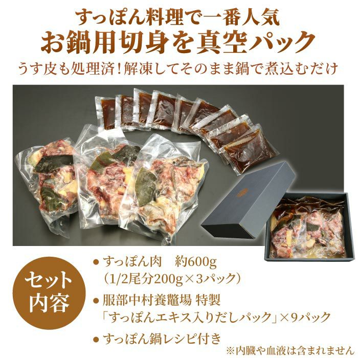 他の画像を見る コラーゲンたっぷり!家庭で手軽にすっぽん鍋セット 服部中村養鼈場 浜名湖の極上すっぽん鍋セット 600g [200g×3パック] 化粧箱付 送料無料 代引き不可 クール便でお届け 通常価格 ¥ 18,300 税込 詳細を見る お気に入りに登録する