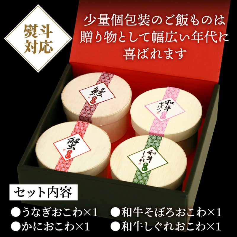 他の画像を見る 毎年15万食以上売り上げる、大五うなぎ工房の大人気商品! おこわ4種食べ比べセット(うなぎ・かに・牛しぐれ・牛そぼろ) 化粧箱付 送料無料 eギフト クール便でお届け 通常価格 ¥ 3,980 税込 詳細を見る お気に入りに登録する