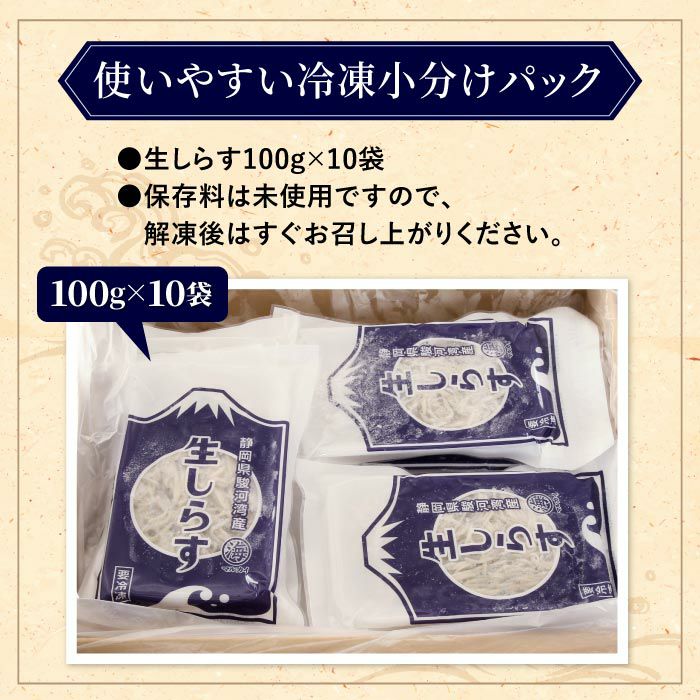 他の画像を見る 用宗港(静岡県駿河湾)鮮度が命の生しらす 1kg(100g×10)【冷凍】 簡易包装 送料無料 eギフト クール便でお届け 通常価格 ¥ 7,280 税込 詳細を見る お気に入りに登録する