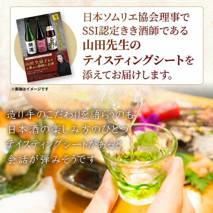 他の画像を見る 静岡の純米酒から「こだわりで語れる」お酒を厳選!日本ソムリエ協会理事 山田久扇子先生お薦めの静岡のお酒 秋に飲みたい純米酒静岡地酒2銘柄飲み比べセット(正雪|開運) 化粧箱付 送料無料 通常価格 ¥ 5,400 税込 在庫切れ 詳細を見る お気に入りに登録する