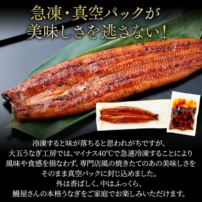 他の画像を見る ギフト 高級 贈答用 土用の丑 鰻 ウナギ たれ お中元 お歳暮 お礼 感謝 数量限定 国産 製造直売 職人 送料無料 父の日 母の日 【2026年6月販売再開予定】国産極上うなぎ蒲焼 駿河大五郎5尾 化粧箱付 送料無料 クール便でお届け 通常価格 ¥ 18,360 税込 〜 通常価格 ¥ 税込 在庫切れ 詳細を見る お気に入りに登録する